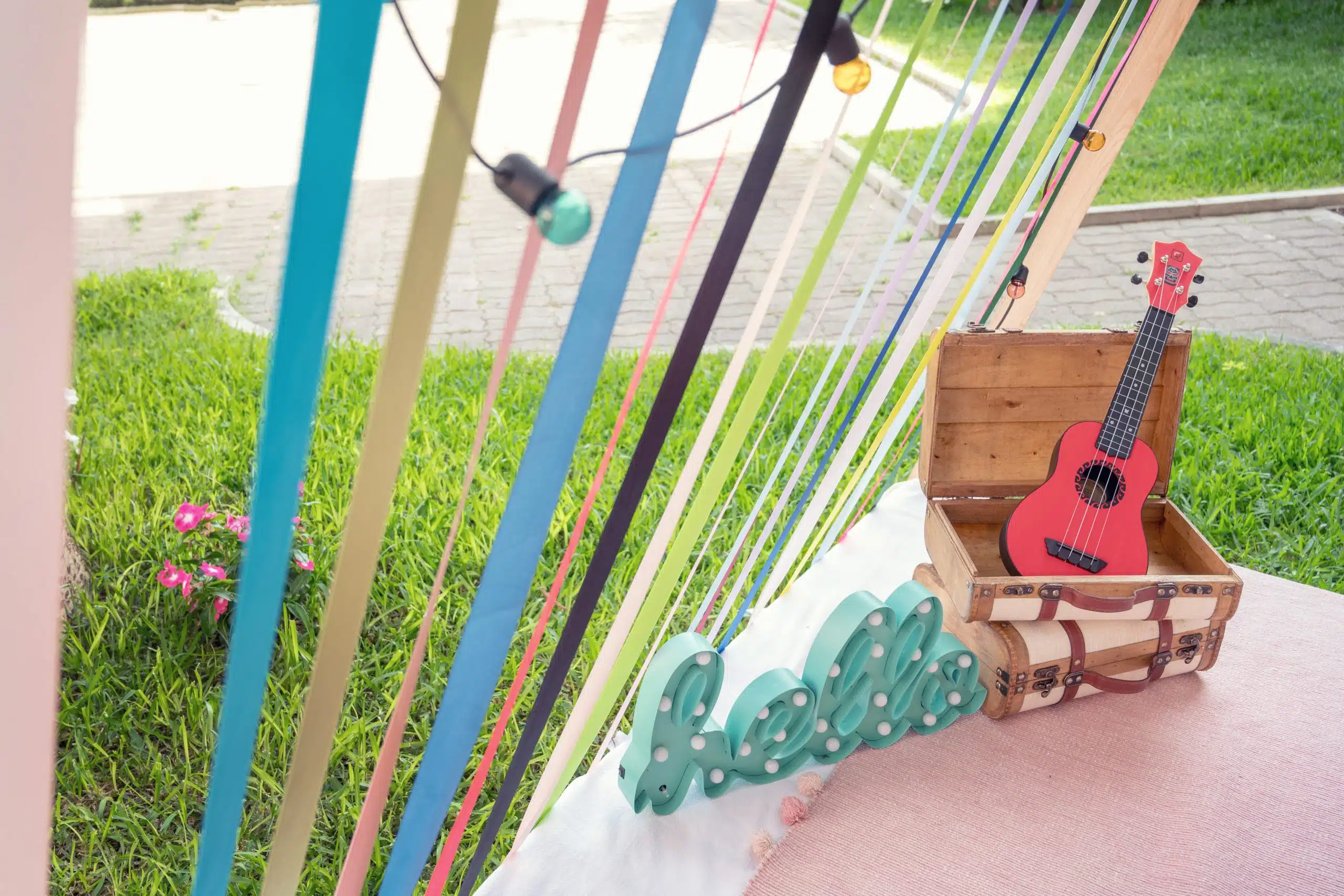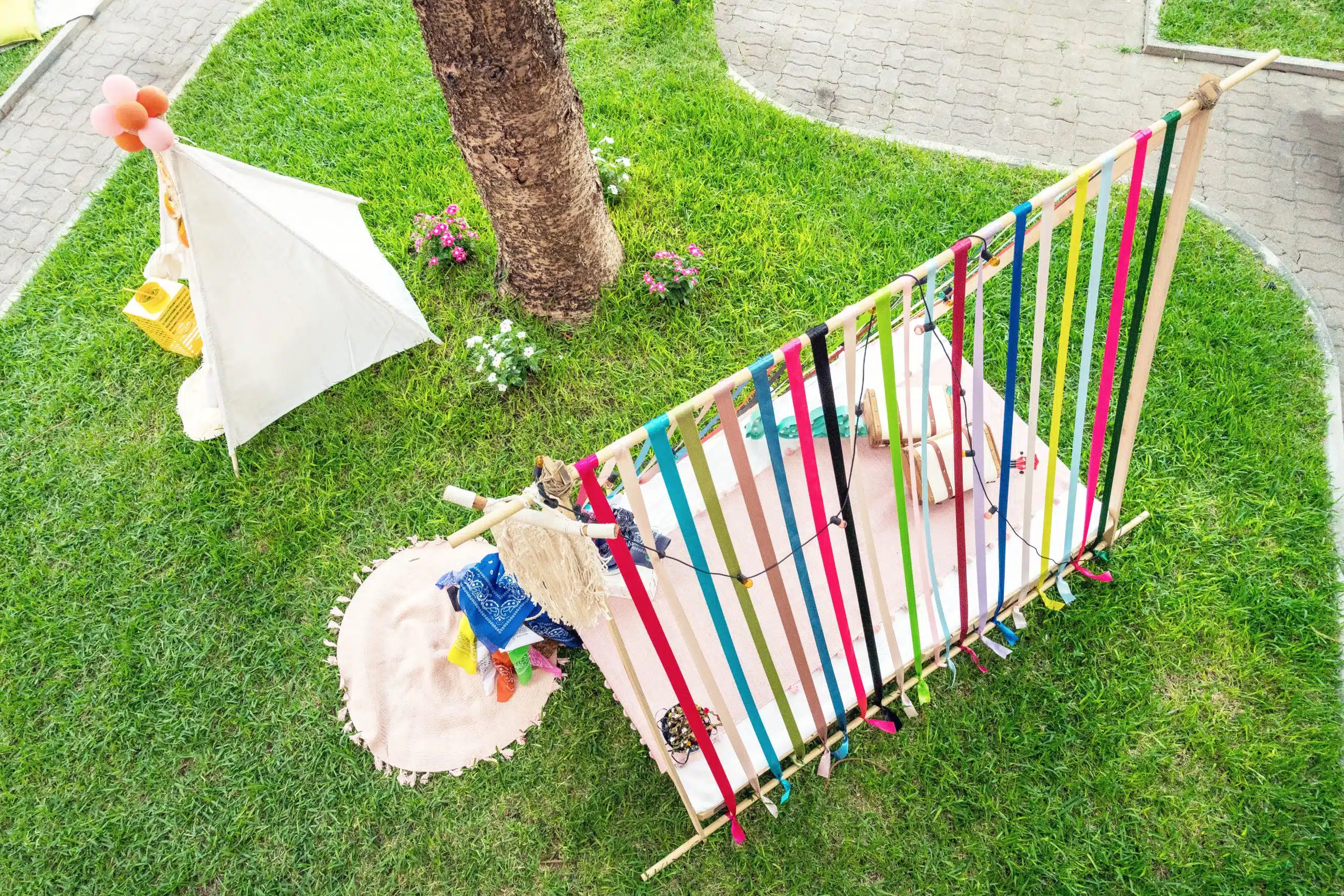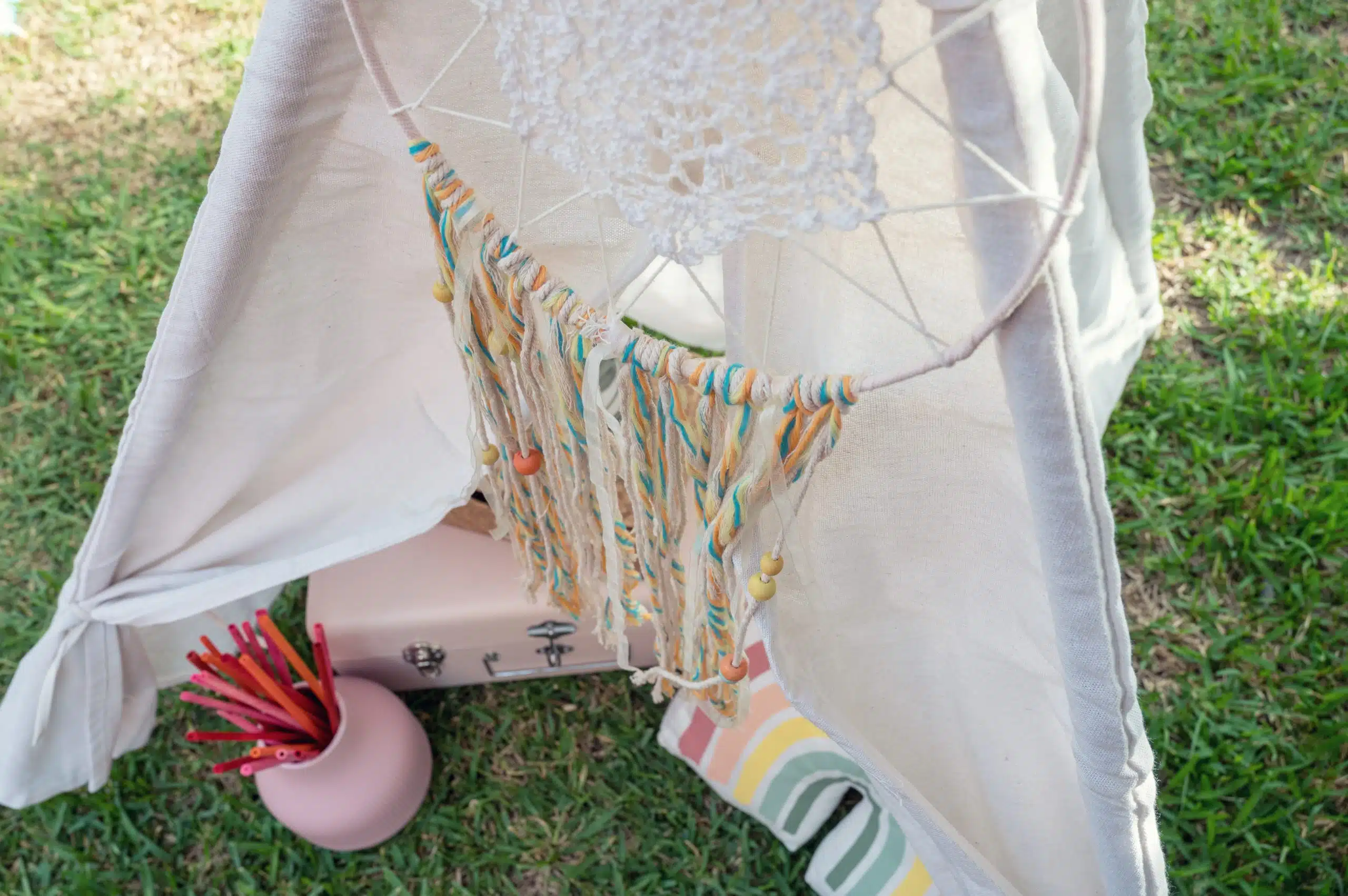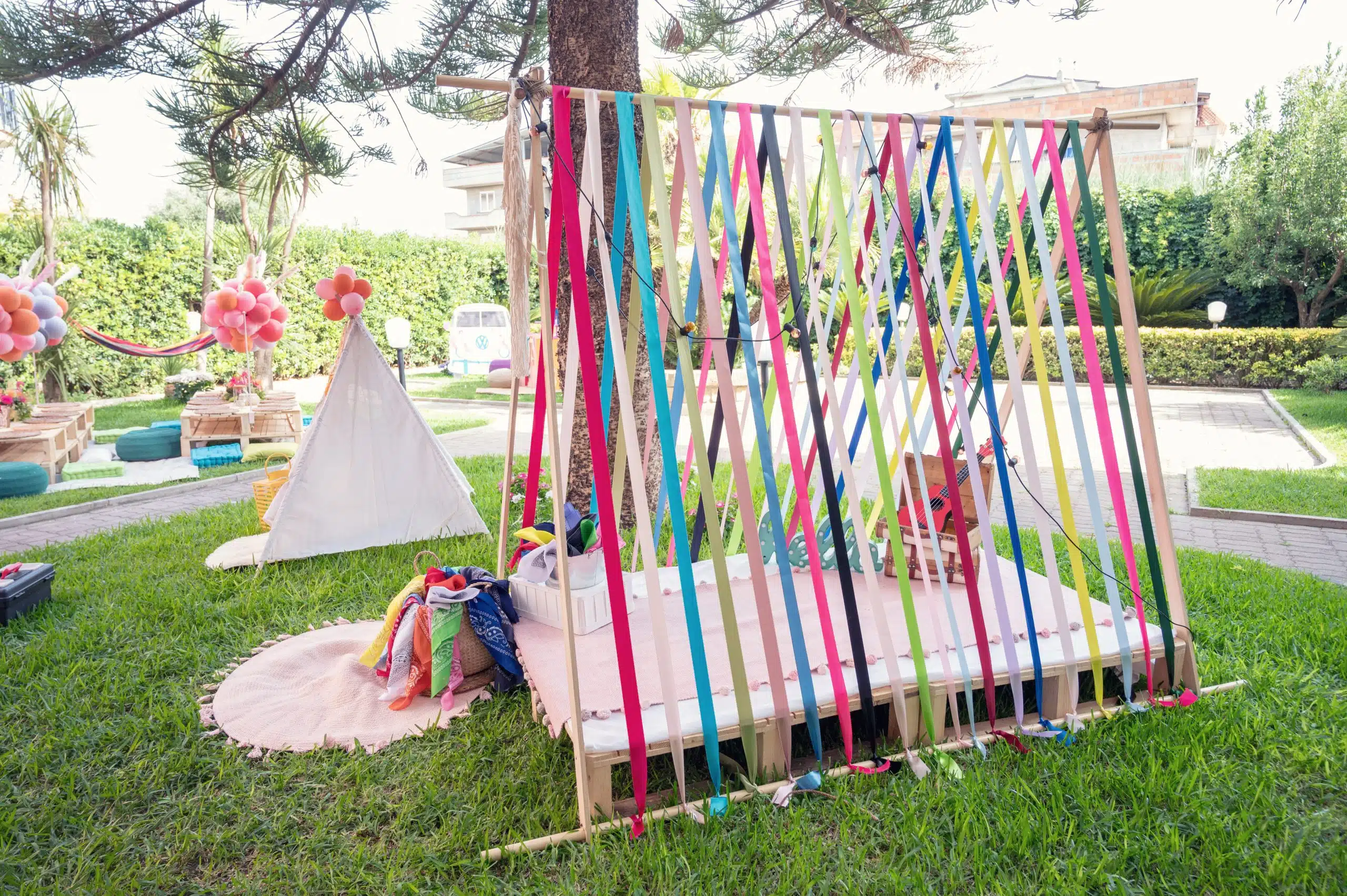 Il Coachella Baby ha fatto impazzire tutti! Gli adulti sono tornati indietro nel tempo, all’epoca hippy degli anni 60 e 70, mentre i ragazzi sono stati totalmente catturati dai colori vivaci e dallo stile divertente. Le tende tepee hanno fatto da padrone, mentre le pedane hanno ospitato la merenda dei ragazzi permettendo loro di vivere un momento a contatto con la natura. Il rattan, il legno, il macramè ed i pampas hanno arricchito tutto il contesto.