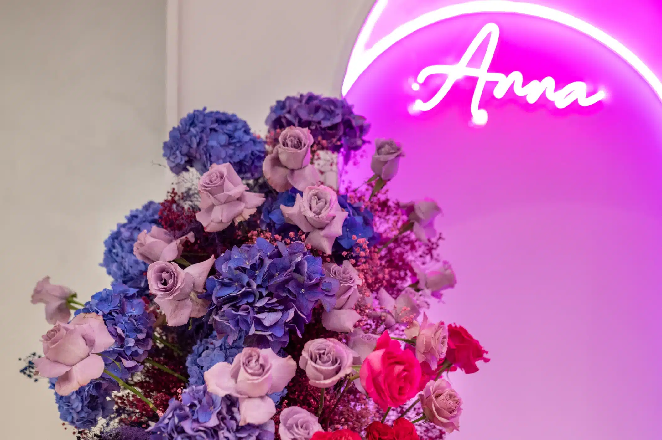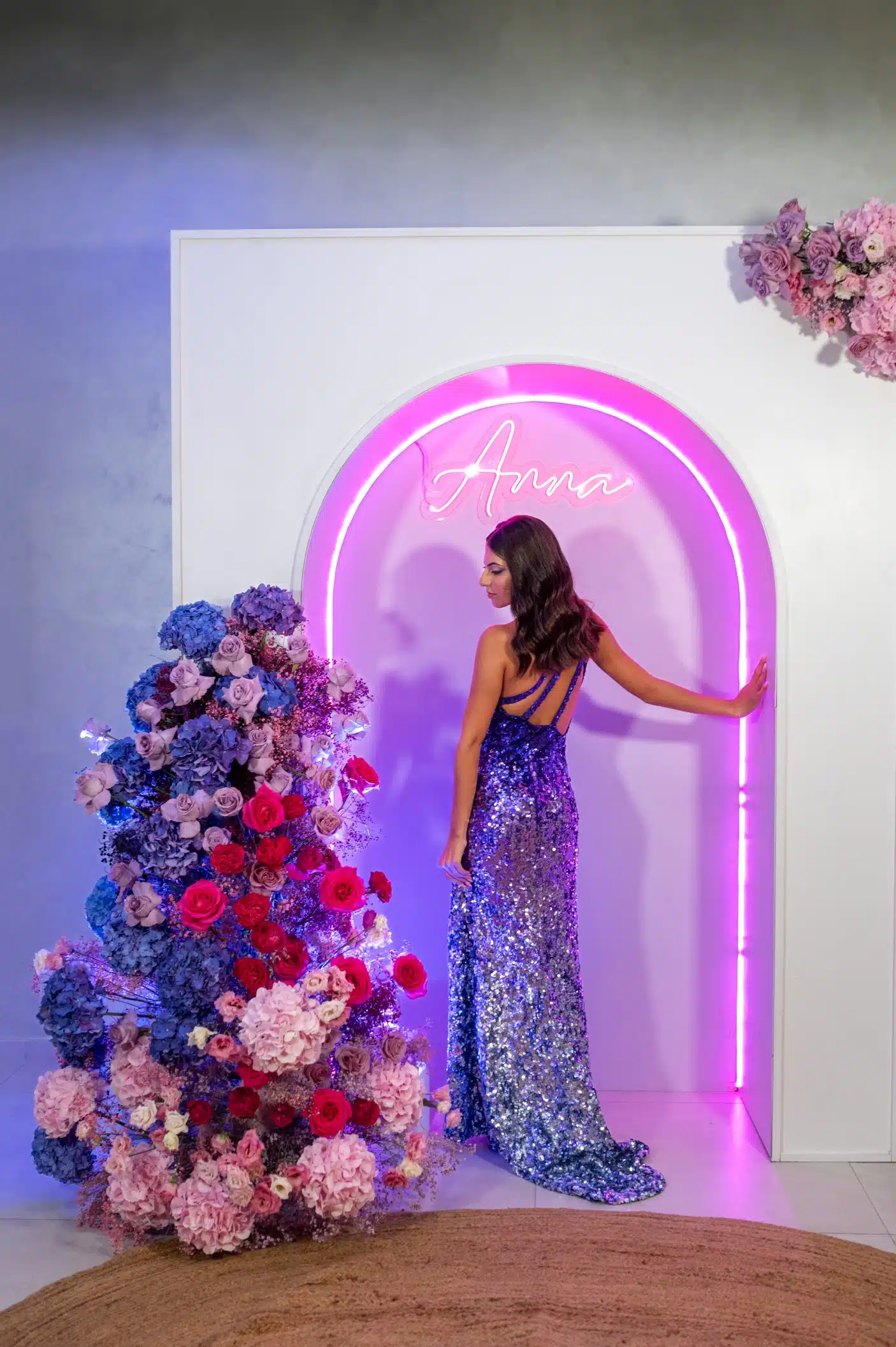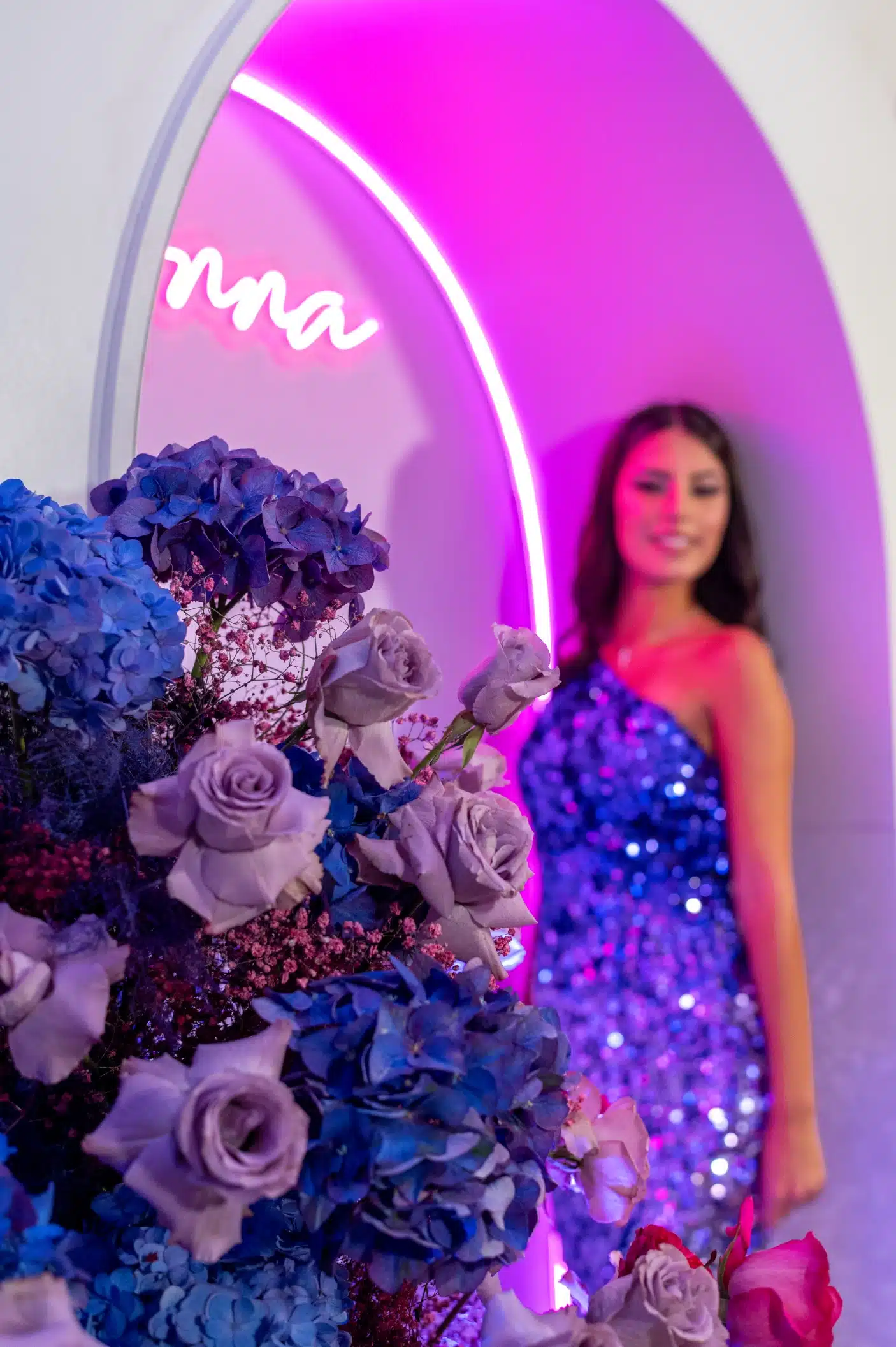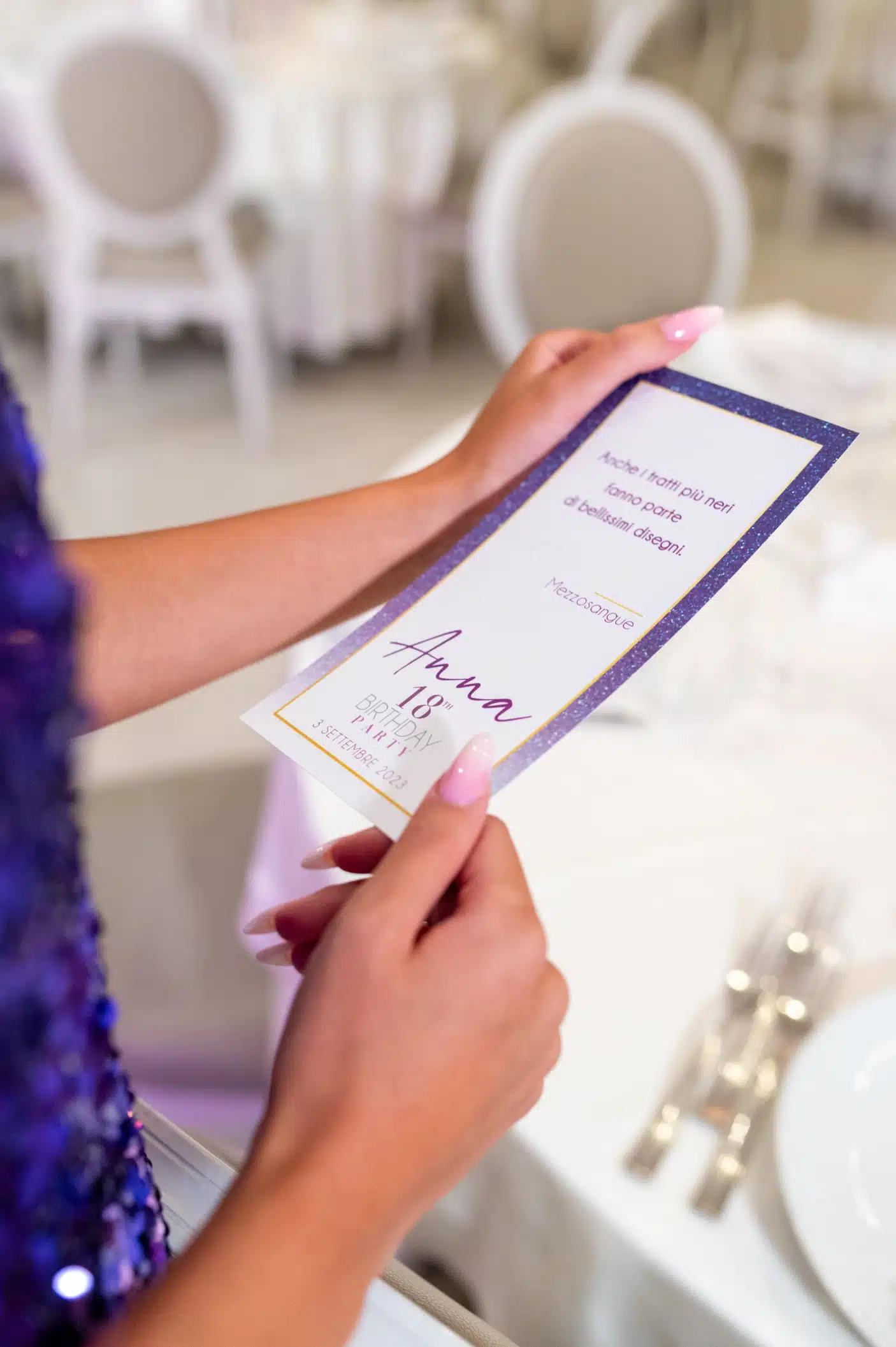 Anna desiderava un diciottesimo semplice ed elegante con le tonalità del viola ed una struttura ad arco.