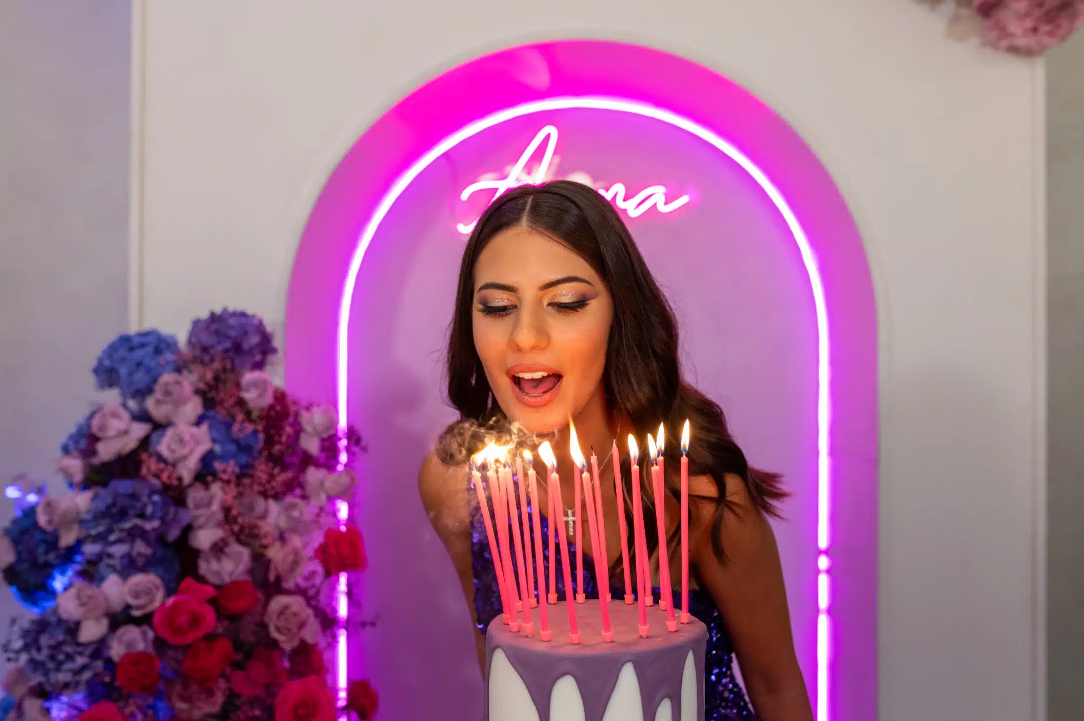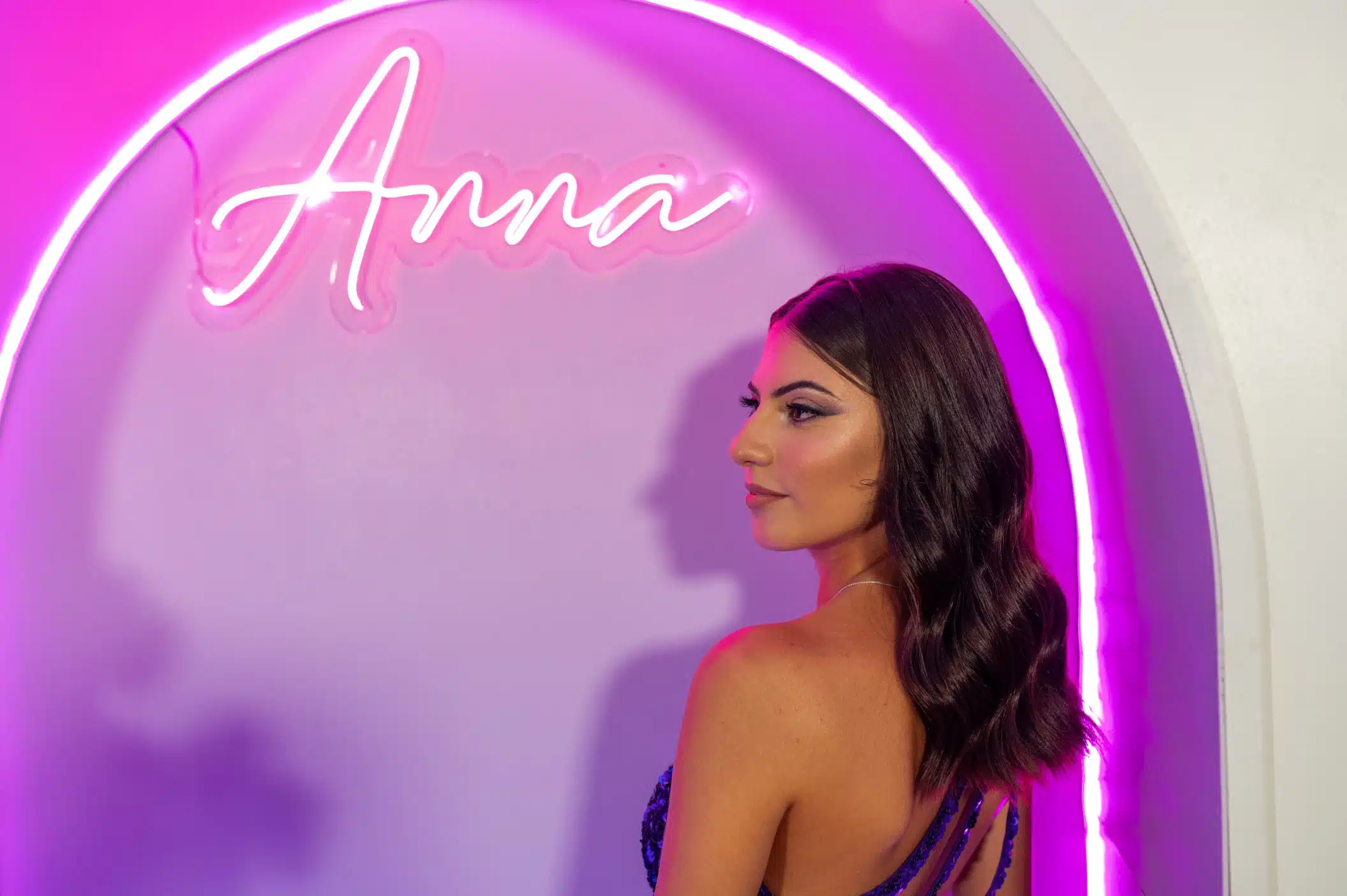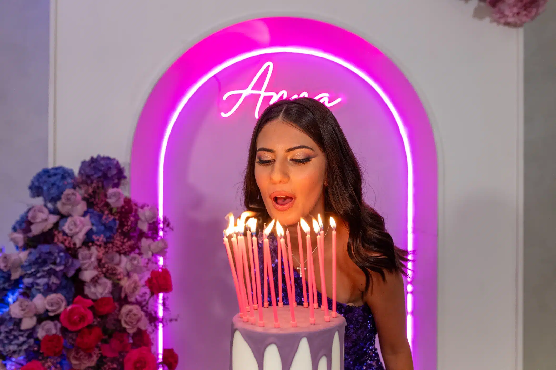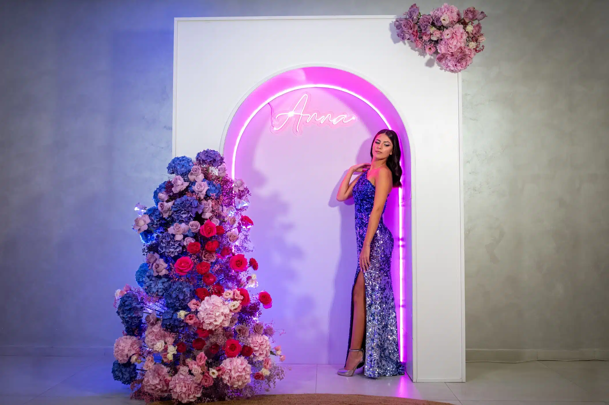 Anna desiderava un diciottesimo semplice ed elegante con le tonalità del viola ed una struttura ad arco.