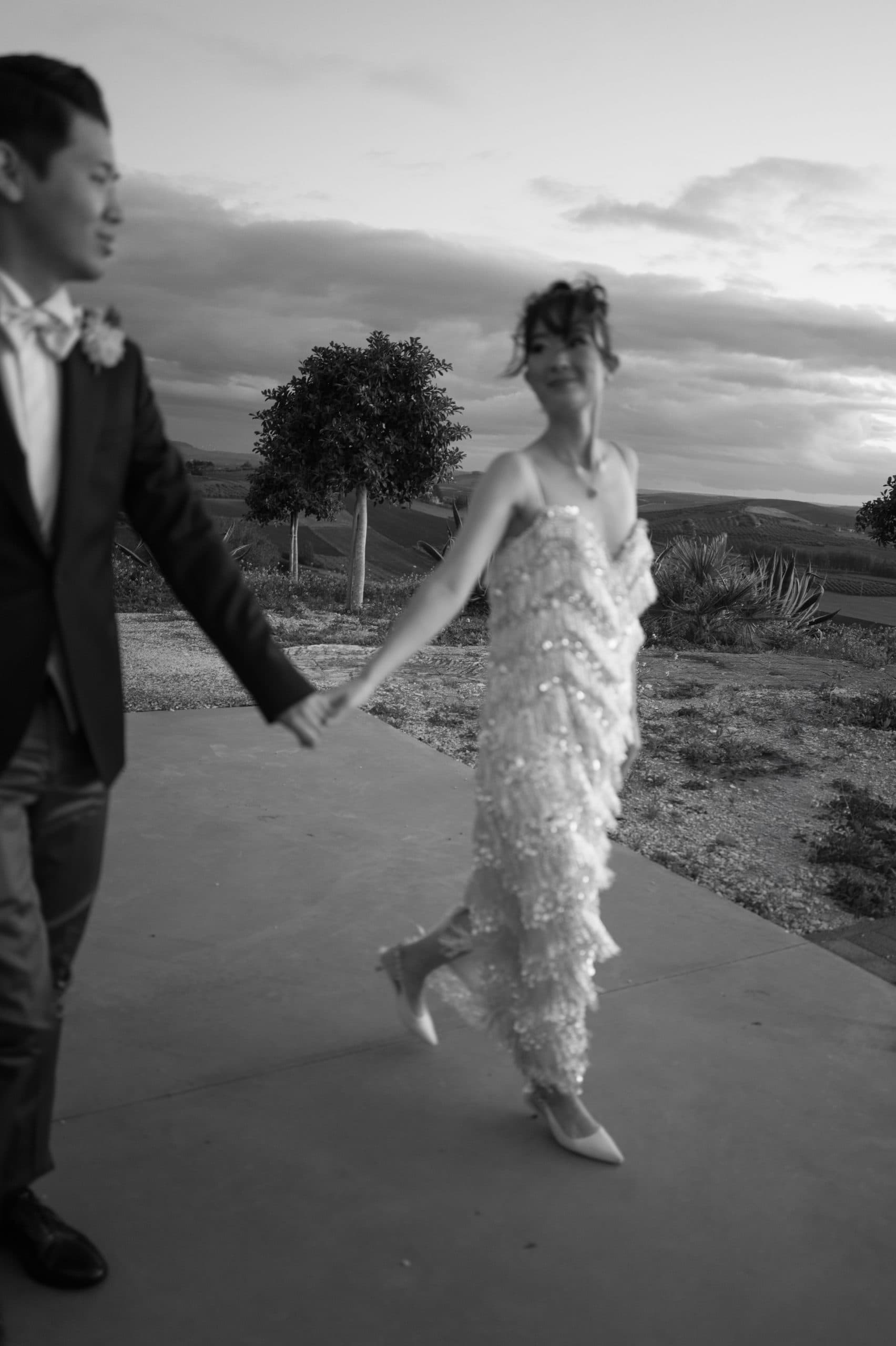 Qui, dove il vino racconta la terra e la convivialità diventa arte, la coppia celebra l’amore circondati dai colori, dai sapori e dalle emozioni di un luogo magico dove il tempo sembra essersi fermato.